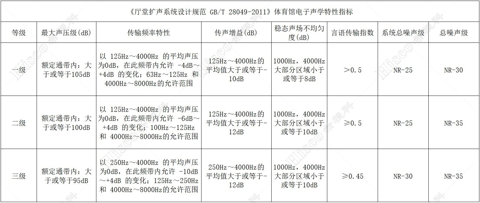 三.体育场馆在扩声系统中电子声学设计标准