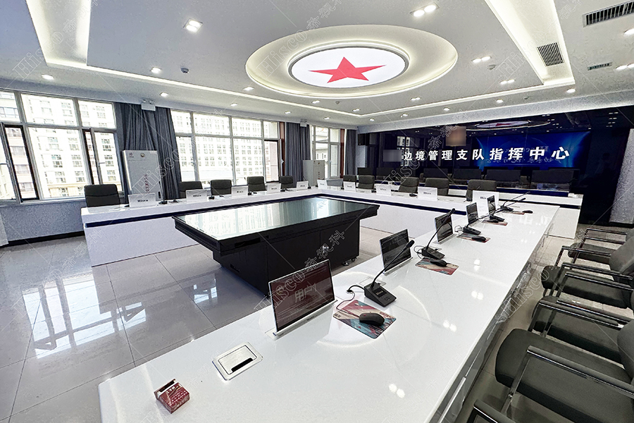 某边境管理支队指挥中心引进了希视科品牌的分布式、无纸化、数字会讨和专业扩声系统,以建设高效智能的会议室