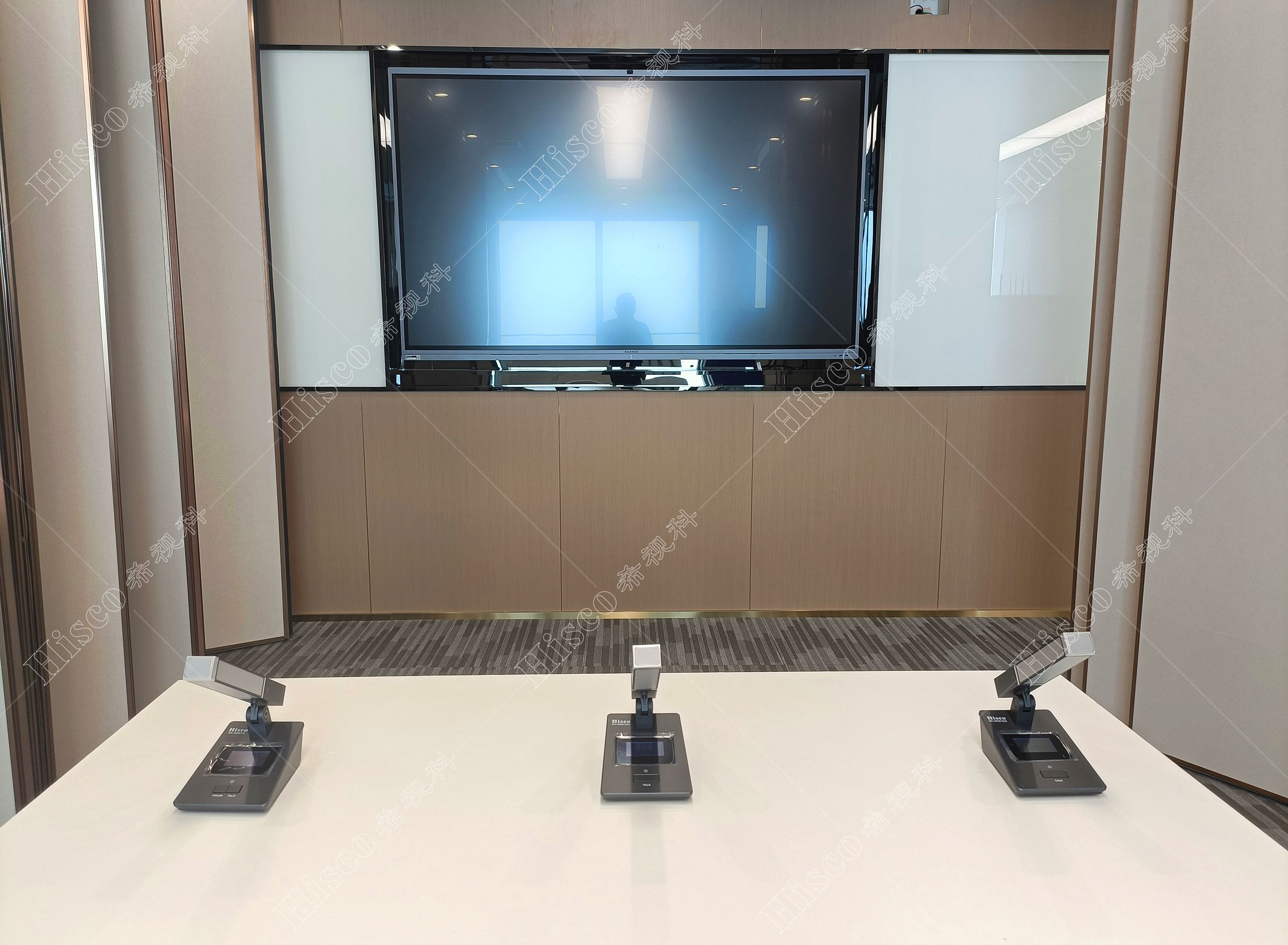 会议室内需要需要做扩声系统、会议系统、显示系统,智能化系统,满足日常开会的讨论、发言等等。